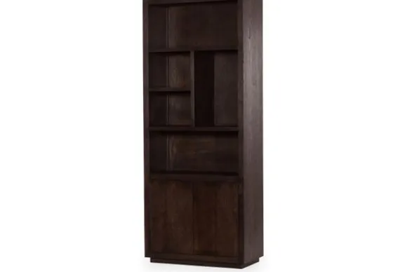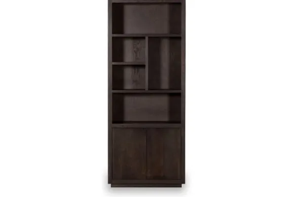 Vakkenkast Mincio VF 0126 van het merk Tower Living is gemaakt van eikenhout in een diepe espressokleur. Het ontwerp combineert open vakken met gesloten kastdeuren, waardoor je jouw favoriete accessoires en boeken stijlvol kunt tonen en tegelijk spullen netjes kunt opbergen.