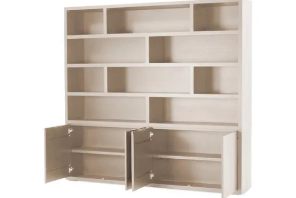 Boekenkast Established van het merk Van Dijk Furniture is verkrijgbaar in verschillende kleuren 100% massief eikenhout. Eikenhout leeft en geeft hierdoor karakter aan jouw meubelstuk. Daarnaast is elk stuk uniek door de nerven en noesten. Deze kast heeft vier deuren en tien open vakken. Veel display en opbergmogelijkheden dus! De open vakken hebben verschillende afmetingen en zijn als een baksteen motief geplaatst. Dit zorgt voor een speelser uiterlijk.
