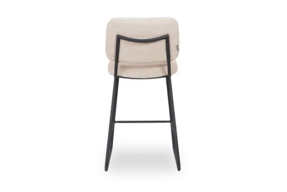 Barkruk Noah is uitgevoerd in naturel bouclé, een naturelkleurige geweven stof van onregelmatig bewerkte garens. Noah bestaat uit een rechthoekige rugleuning voorzien van afgeronde hoeken, aparte rugleuning en zitting, die verbonden zijn door een prachtig doorlopend zwart frame, voorzien van een handgreep op de achterkant van de rugleuning. Dit maakt Noah extra functioneel waardoor het aanschuiven van deze eetkamerstoel nog makkelijker wordt. De sledepoot zorgt voor een luchtig en elegant uiterlijk en de extra opstap maakt de zit nog net even iets makkelijker en comfortabeler.