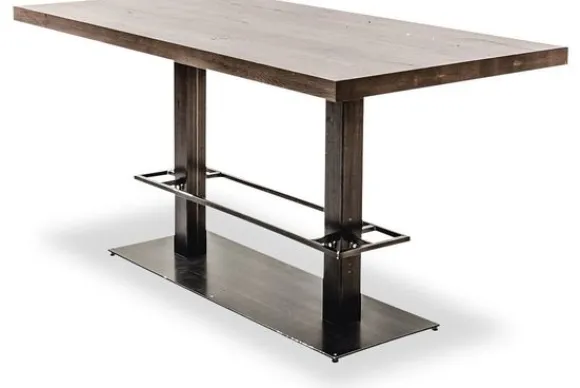 Deze bartafel wordt standaard uitgevoerd met een 5 cm eiken blad. Waarvan 2,5 cm massief en 2,5 cm opgedikt en met metalen poot in de kleur rustiek/blauwstaal.