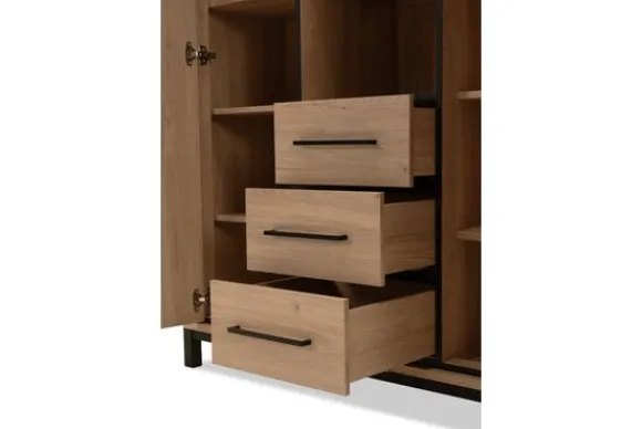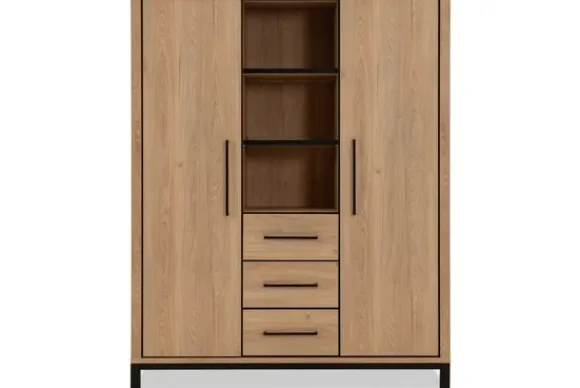 Bergkast Ravelle van het merk Lamulux is een stijlvolle kast in de kleur Old Oak. De bergkast heeft 2 deuren, 3 lades en 3 open vakken en beschikt standaard over een softclose systeem.