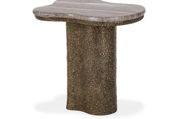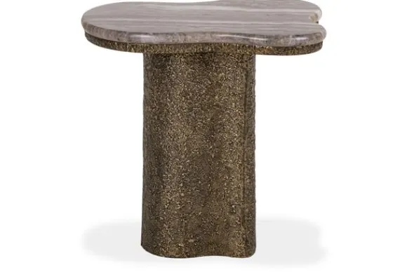Bijzettafel Abandos 214055 van het merk Richmond Interiors heeft een opvallend blad van marmer met een speelse vorm. De lichte tekening in het blad zorgt voor een rustige uitstraling en maakt elke tafel uniek.