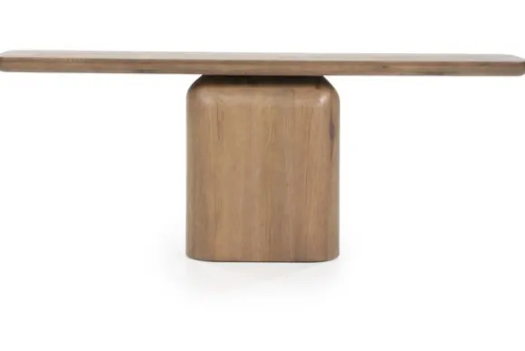 Deze royale bijzettafel, gemaakt van eikenhout en afgewerkt met eiken fineer, past moeiteloos in verschillende woonstijlen. Het ontwerp combineert een slank, minimalistisch tafelblad met een stevige en robuuste voet, wat zorgt voor een verfijnde uitstraling en een stabiele constructie. Het natuurlijke eikenhout toont prachtige houtnerven en warme tinten, wat deze tafel een tijdloze en rustieke uitstraling geeft. Ideaal als aanvulling in de woonkamer of als blikvanger in een hal of gang. Deze tafel is een functioneel, tijdloos meubelstuk die de kamer vult met een warme en natuurlijke sfeer.