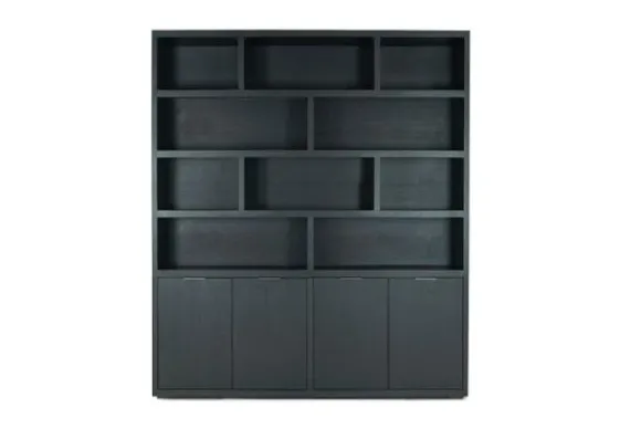 Boekenkast Established van het merk Van Dijk Furniture is verkrijgbaar in verschillende kleuren 100% massief eikenhout. Eikenhout leeft en geeft hierdoor karakter aan jouw meubelstuk. Daarnaast is elk stuk uniek door de nerven en noesten. Deze kast heeft vier deuren en tien openvakken. Veel display en opbergmogelijkheden dus! De open vakken hebben verschillende afmetingen en zijn als een baksteen motief geplaatst. Dit zorgt voor een speelser uiterlijk. De kast is ook verkrijgbaar met LED-verlichting, dit is optioneel.