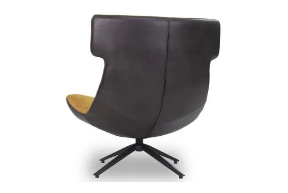 Draaifauteuil Lowie van het merk Bing is verkrijgbaar in alle kleuren en in diverse materialen zoals stof, velvet en rundleder. De fauteuil staat op een zwarte metalen stervoet waardoor de stoel 360 graden draaibaar is. Het unieke design van de hoge rugleuning geeft de fauteuil een moderne uitstraling.