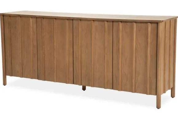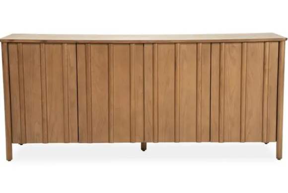Het dressoir is voorzien van vier deuren zonder grepen. Achter de deuren bevinden zich ruime legplanken die veel opbergruimte bieden voor servies glaswerk of woonaccessoires. Dit dressoir maakt deel uit van een met bijpassende meubels.