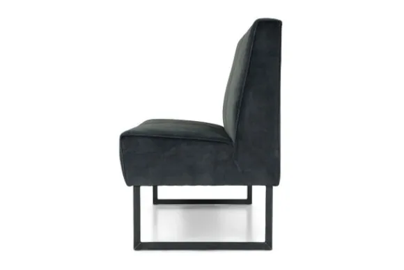 Deze eetkamerbank komt met een geknepen naad, metalen sledepoten, gladde rugleuning en dichte voor- en achterkant. Deze eetbank wordt geleverd met een extra steunpoot in het midden vanaf een breedte van 220 cm tot 250 cm, vanaf 250 cm komt er een extra sledepoot in het midden.