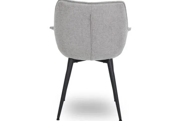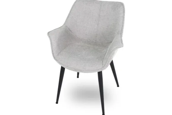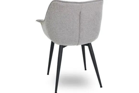 Eetkamerstoel Sandy grijs Houston 95842 van het merk Eleonora is beschikbaar in drie verschillende kleuren: beige, bruin en grijs. Deze stoel is bekleed met een stof die je kunt schoonmaken met de stofzuiger. Deze stoel is voorzien van zwart metalen poten. De rugleuning van de stoel loopt vloeiend over in uitlopende armleuningen. De stoel is afgewerkt met geknepen naden.