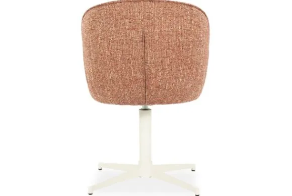 De draaibare basis in wit gepoedercoat metaal voegt een modern en functioneel element toe, terwijl het slanke onderstel de stoel visueel licht en luchtig houdt. Een perfecte balans tussen design en dagelijks gebruiksgemak.