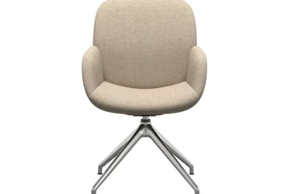 Eetkamerstoel Bay van het merk Stressless is verkrijgbaar in alle kleuren en verschillende materiaalsoorten als stof en rundleder. De eetstoelen van Stressless zijn uitgevoerd met het Balance&Glide systeem. Dit systeem beweegt mee met je houding, waardoor je goed rechtop kan eten, maar ook even onderuit kan natafelen! Met het strakke design zijn dit tijdloze stoelen waar je jarenlang van kan genieten. Deze stoel is 360 graden draaibaar, een auto return functie is optioneel.