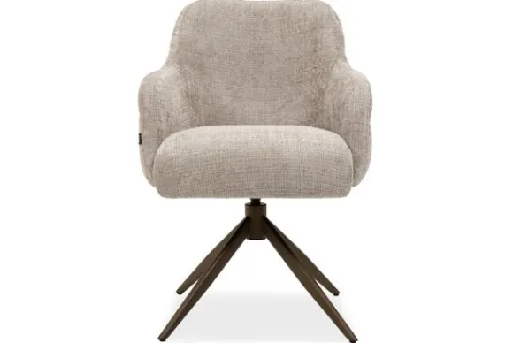 Eetkamerstoel Neptunus Cremona 14 van het merk Veyron is een draaibare eetkamerstoel met een stijlvolle en comfortabele uitstraling. De zitting is bekleed met een zachte beige stof met een subtiele structuur, wat zorgt voor een warme sfeer aan de eettafel.