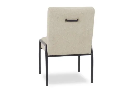 Deze eetkamerstoel wordt standaard uitgevoerd zonder wieltjes en met handgreep op de rugzijde. Deze handgreep kun je ook weglaten en wieltjes zijn optioneel.