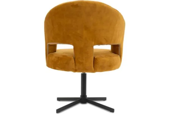 Eetkamerstoel Forza van het merk Opulenza is verkrijgbaar in diverse kleuren en materialen zoals stof, velvet en microleder. De ronde rugleuning met een open detail geeft stijlvolle ondersteuning aan de onderrug, terwijl de brede zitting en diepe zitdiepte zorgen voor een comfortabele, robuuste uitstraling.