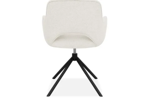 Het zwarte metalen onderstel zorgt voor een stevig contrast met de zachte bekleding en geeft de stoel een eigentijds karakter.