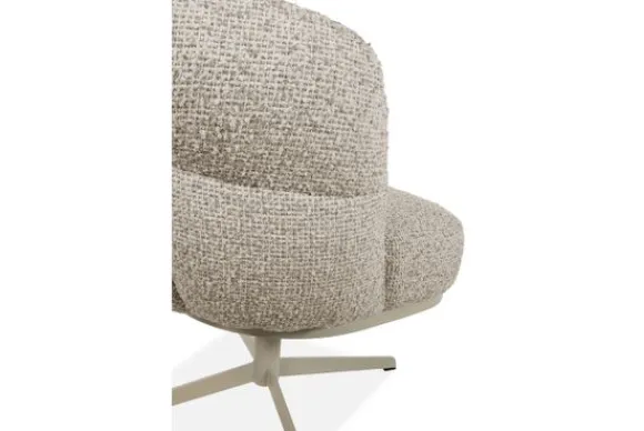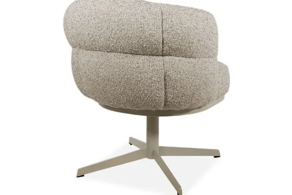 Het onderstel in poedercoat beige met 360° draaifunctie geeft de stoel niet alleen een functionele twist, maar ook een moderne, industriële flair. Deze combinatie van organische vormen en strakke lijnen maakt de stoel zowel visueel in balans als uiterst comfortabel.