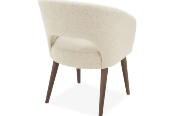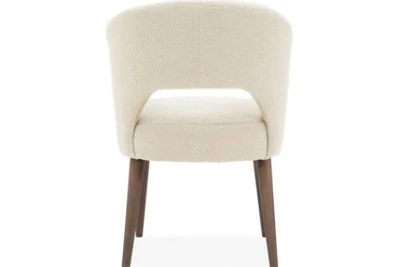 Eetkamerstoel Virlet van het merk Bellagio Seats is verkrijgbaar in verschillende kleuren. De eetkamerstoel is voorzien van armleuningen die overlopen in de rugleuning met een opening onderin. Door de rechte houten poten staat de stoel stevig op de grond. De eetstoel is standaard uitgevoerd met pootkleur Walnoot (geolied).