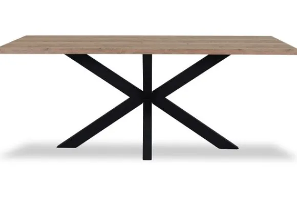 Eettafel Novac van het merk Lamulux, hier te zien in de kleur barley, is beschikbaar in diverse afmetingen en kleuren. De tafel is voorzien van een zwart metalen onderstel.