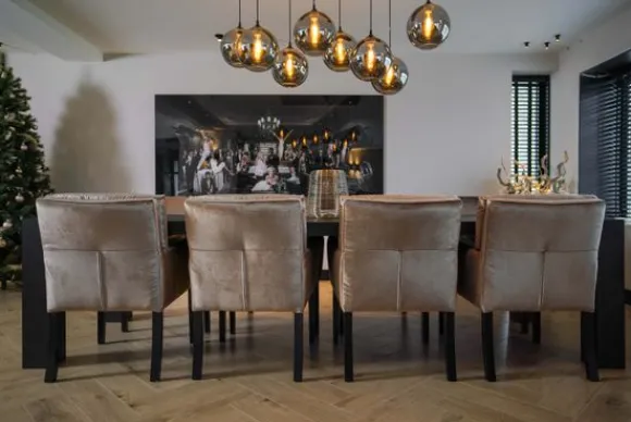 Eetkamerstoel Olof van het merk Vie Chic is beschikbaar in alle kleuren en in verschillende materiaalsoorten zoals stof, velvet en microvezel. Je kunt kiezen uit verschillende pootkleuren. Deze stoel heeft een stiksel in de voorkant en achterkant van de rugleuning, daarnaast is het rugkussen t-vormig.