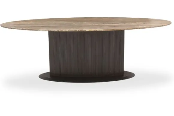 Eettafel Russo 214321 van het merk Richmond Interiors is een stijlvolle blikvanger met een ovale vorm die warmte en karakter toevoegt aan de eetruimte. Het tafelblad is vervaardigd uit travertin en toont een prachtig natuurlijk patroon dat elk exemplaar uniek maakt.