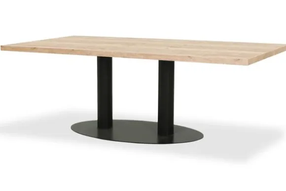 Het tafelblad van de maten 160 cm tot en met 260 cm is 4 cm dik, waarvan 2 cm opgedikt. Het tafelblad van de maten 280 cm en 300 cm is 4 cm dik.