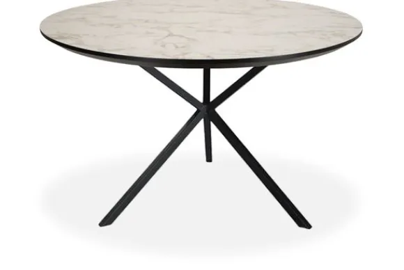 Het tafelblad heeft een dikte van 2,8 cm. De eettafel wordt geleverd met een zwarte spinpoot.