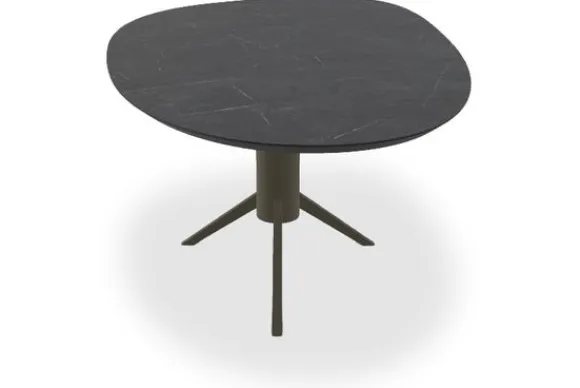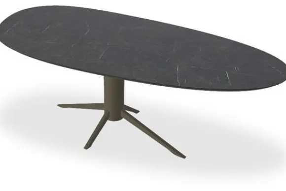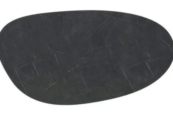 Eettafel Nuvio van het merk Every Table BV heeft een kiezelvormig HPL blad van 2,8 centimeter dik. Het blad is verkrijgbaar in verschillende maten en wordt standaard geleverd met een tapse rand.