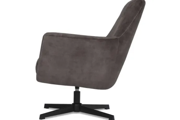Fauteuil Toby is een ergonomische draaifauteuil uitgevoerd in antraciet kleurig velours. De mooie strakke lijnen in combinatie met de subtiele rondingen zorgen ervoor dat Toby een lust voor het oog is en daarnaast is voorzien van maximaal comfort. De dikke zitting en perfecte vorm armleuningen zorgen voor een extra fijne zit. De toffe decoratieve stofvlakken op de armleuningen en de rugleuning, afgewerkt met een contrasterend stiksel zorgen voor een trendy, speelse en luxe uitstraling. De robuuste metalen kruispoot uitgevoerd in zwart zorgt voor stevigheid en geeft een moderne twist.
