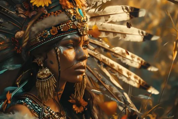 Glasschilderij Indiaan Links 110160BS-649 van het merk Ter Halle is 160cm breed en 110cm hoog. Op dit schilderij is een vrouwelijke indiaan afgebeeld. Een glasschilderij heeft levendige kleuren, een glanzende afwerking en een realistisch diepte-effect. Al deze eigenschappen zorgen voor de luxe uitstraling van dit schilderij. Dit schilderij wordt met een ophangsysteem geleverd.