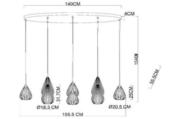 De hanglamp beschikt over 8 E27 fittingen en wordt geleverd exclusief lichtbronnen. De lengte van de snoeren kan je korter maken om de verlichting perfect te laten aanlsuiten op jouw interieur.
