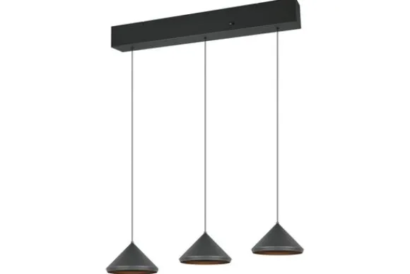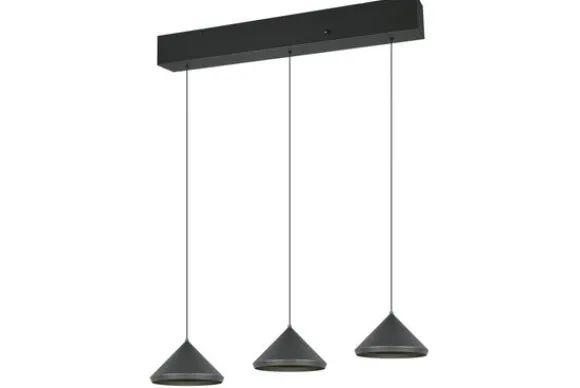 Hanglamp Laguna 336210332 van het merk Trio Lighting is een moderne en stijlvolle lamp met drie kegelvormige kappen van zwart metaal. De matte afwerking en de strakke lijnen geven de lamp een verfijnde uitstraling die zowel elegant als tijdloos oogt. Perfect boven een eettafel of kookeiland, waar ze zorgt voor een gelijkmatige en sfeervolle verlichting.