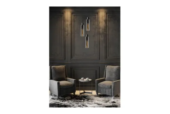 Hanglamp Orlando van het merk Lucide bestaat uit drie elegante glazen ciliders in verschillende hoogtes. Het fuméglas in combinatie met de zwarte stoffen kabels toveren je zithoek meteen om in een stijlvolle ruimte. De hoogtes van de lichtbronnen variëren tussen de 120 en 172 centimeter. Je kan deze hoogtes onderling nog aanpassen. Combineer met lange, buisvormige led filament lampen met fuméglas voor een afgewerkt resultaat. De ideale sfeer? Die creëer je door Orlando aan te sluiten op een dimmer.