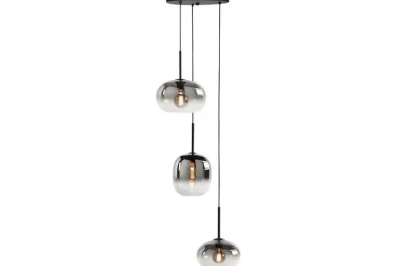Hanglamp Bellini van het merk Highlight heeft drie rookglazen lampenkappen van verschillende formaten. Deze drie lampen zijn verstelbaar in lengte. De maximale lengte is 200 cm. De lampen kunnen op verschillende hoogtes gehangen worden, waardoor je een speels effect creeërt. De Bellini serie bestaat uit een tafellamp, een wandlamp, een vloerlamp en hanglampen. Deze zijn er zowel in rookkleurig glas als in goudkleurig glas. Maak je interieur helemaal af met de complete serie.