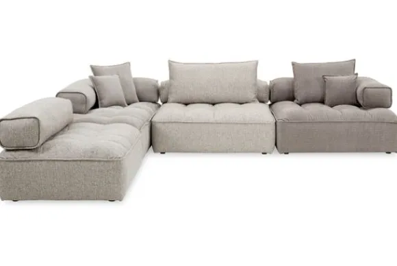 Bankstel Puzetti van het merk Be Inspired is een tijdloze en elegante elementenbank met een rustige uitstraling. De rugleuningen van deze bank zitten niet vast aan het zitgedeelte. Deze zijn aan de onderkant verzwaard zodat ze blijven liggen wanneer je er tegenaan leunt. Ook kan deze bank samengesteld worden uit verschillende stoffen voor een uniek en speels effect zoals deze afgebeelde opstelling.