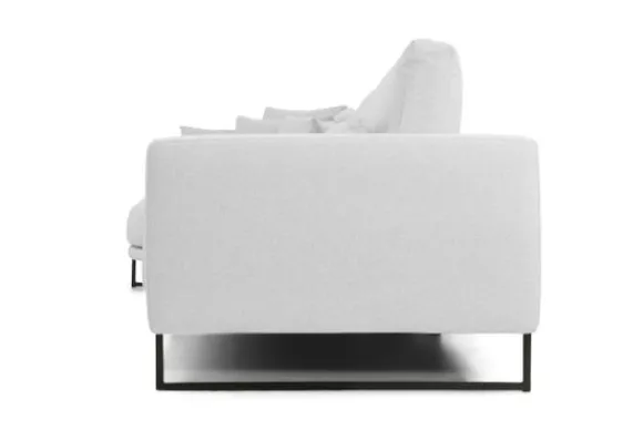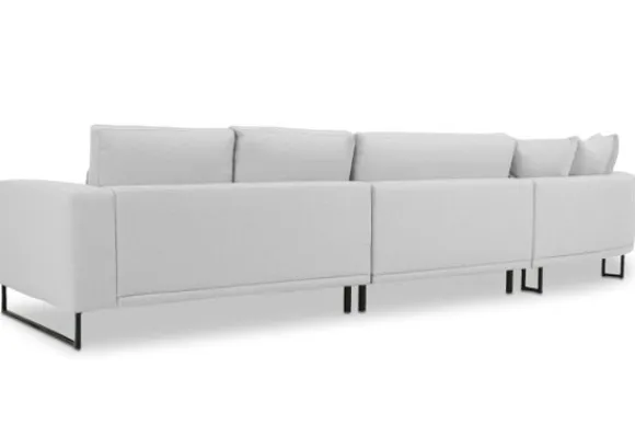 Loungebank Dordoni II van het merk Be Inspired is verkrijgbaar in alle kleuren. Tevens is de bank leverbaar in materiaalsoorten zoals ribstof, teddy en velvet. Je kunt kiezen uit diverse afmetingen. De Dordoni II bank wordt standaard uitgevoerd met alle sierkussens en lendekussens die ook op de foto te zien zijn. De rugkussens daar achter zijn lekker hoog, deze combinatie zorgt voor een goede ondersteuning van de rug. Alle rugkussens zitten los en zijn omkeerbaar, de zitkussens zitten vast met klittenband. Het unieke aan de Dordoni II is het ronde loungegedeelte. Je kunt hier lekker wegkruipen tussen alle sierkussens. Deze bank oogt ruimtelijk door de hoge metalen sledepoten.