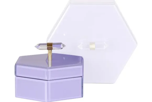 Opbergbox Jutta klein 212424 van het merk Richmond Interiors is gemaakt van glas en MDF. De opbergbox heeft een uniek detail door de resin edelstenen aan de bovenkant. De binnenkant is gemaakt van suede, hierdoor is de opbergbox ook geschikt om sieraden in op te bergen.