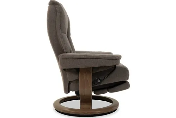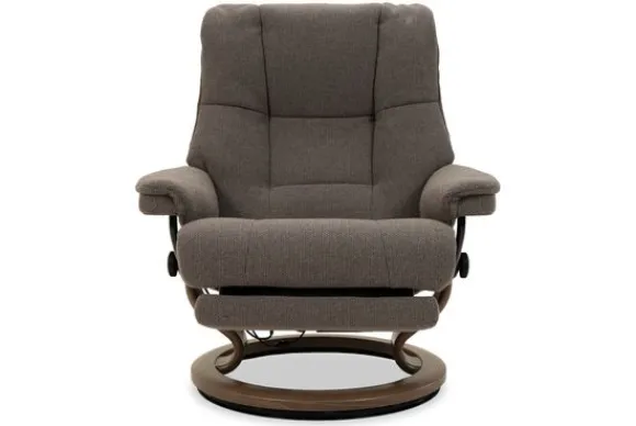 Relaxfauteuil Mayfair Power van het merk Stressless is een tijdloze en elegante fauteuil met een luxe uitstraling. De zachte bruine stoffering en de ronde houten voet geven een warm en stijlvol tintje dat perfect past in een modern of Scandinavisch interieur.
