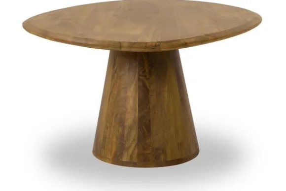 Salontafel Flare FFU.CT.0022 van het merk MySons is gemaakt van mangohout met een ginger finish. Deze tafel heeft een kegelvormige poot en een blad in een organische vorm. Mangohout kun je herkennen aan de vele kleurschakeringen en ongelijkheden in het oppervlakte van het hout, waardoor geen enkel meubelstuk hetzelfde is. De kleuren in mangohout kunnen variëren van licht- tot donkerbruine tonen, met soms een rode gloed of juist een gelige ondertoon. Mangohout is een duurzame houtsoort.