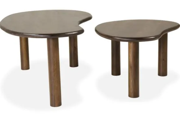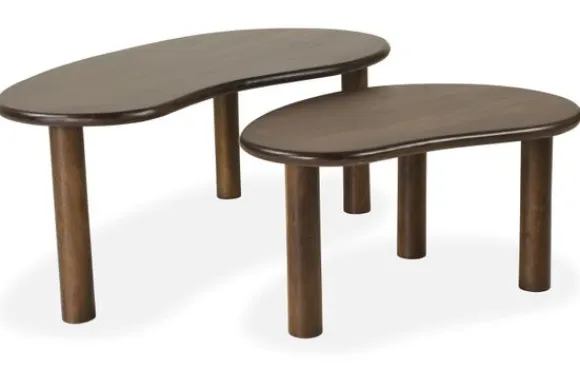 Salontafelset Nubi van het merk Livingfurn is set van twee bruine salontafels gemaakt van mangohout. Mangohout kun je herkennen aan de vele kleurschakeringen en ongelijkheden in het oppervlakte van het hout, waardoor geen enkel meubelstuk hetzelfde is. De kleuren in mangohout kunnen variëren van licht- tot donkerbruine tonen. Mangohout is een duurzame houtsoort. De salontafels hebben een unieke, organische vorm. De grote tafel heeft een afmeting van H39xB110xD60 cm. De kleine tafel heeft een afmeting van H35xB70xD50 cm.