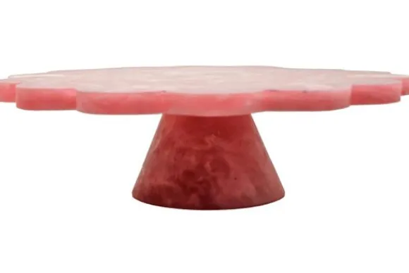 De taartplateau is gemaakt van kunsthars. Dit materiaal zorgt voor een stevige uitvoering en een glad oppervlak. De roze kleur geeft het plateau een opvallend accent op tafel.