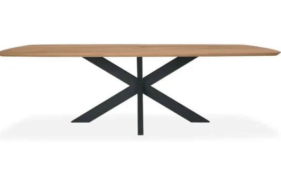 Eettafel Amarant van het merk Premium Interior is een verfijnde samensmelting van luxe en modern design. Het royale Deens ovale blad straalt warmte en elegantie uit dankzij de rijke houtnerf, terwijl de sculpturale metalen poten een krachtig en artistiek statement maken. De subtiele rondingen en de strakke belijning geven deze tafel een speels maar evenwichtig karakter.