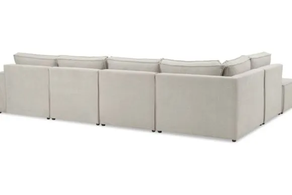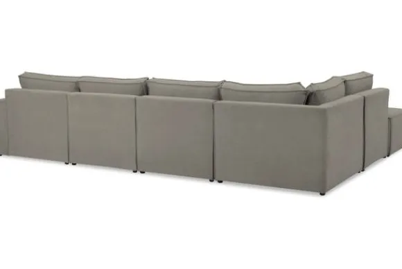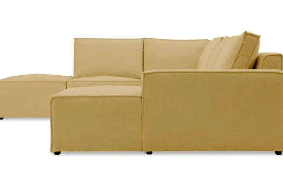 Dit bankstel is zelf samen te stellen in vele afmetingen en elementen, of je kunt gaan voor een van de standaard opstellingen. Deze opstelling is uitgerust met een speelse poef.