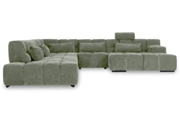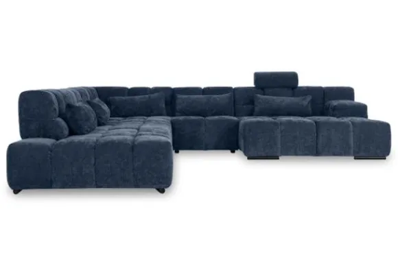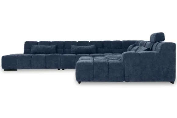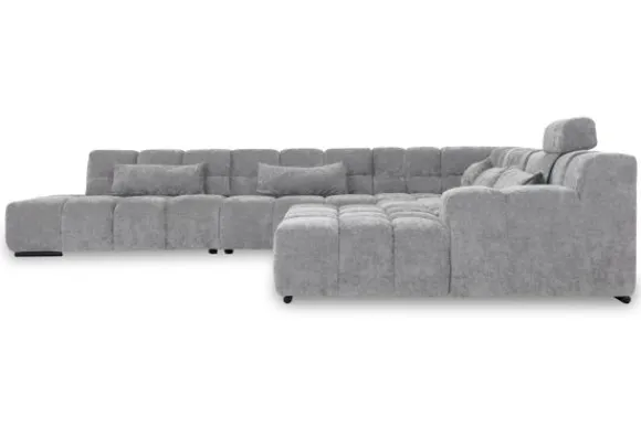 Dit bankstel is samen te stellen in vele afmetingen en verschillende opstellingen, of kies uit een van de standaard opstellingen. Ook kan je kiezen uit mat zwarte of chroom pootjes en zijn er bijpassende hoofdsteunen, sier- en lendekussens en poefjes beschikbaar. Deze worden uitgevoerd in dezelfde stof als de bank.