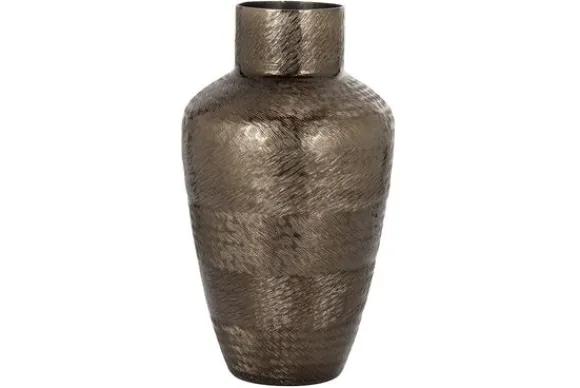 Vaas Joah 211760 klein van het Richmond Interiors is vervaardigd uit aluminium. Deze vaas past perfect in een luxueuze elegante interieurstijl, door de rookzwarte kleur en de details op de vaas. Tip: combineer de vaas met voor de complete look!