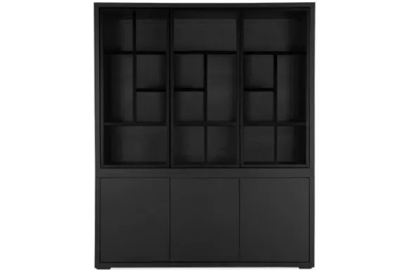 Met een speels geometrisch lijnenspel in de glazen deuren biedt deze vitrinekast een stijlvol podium voor je mooiste decorstukken, servies of boeken. De royale opbergruimte in de gesloten onderkast, bestaande uit drie deuren maakt het mogelijk om minder zichtbare items netjes op te bergen. Dankzij de symmetrische balans tussen open en gesloten vakken past de Velori perfect in een modern, industrieel of minimalistisch interieur