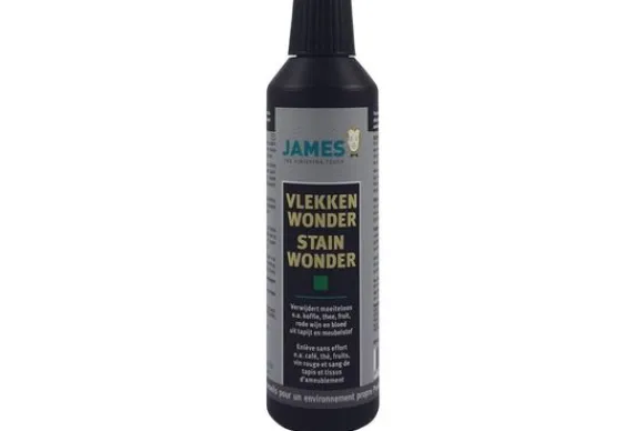 James vlekkenwonder verwijdert moeiteloos o.a. koffie, thee, fruit, rode wijn en bloed uit tapijt en meubelstof. Geschikt voor alle materialen, zowel natuurlijke (zoals wol) als synthetische materialen. Ook oude vlekken zijn vaak nog gemakkelijk te verwijderen; zelfs een oude rode wijn vlek! James vlekkenwonder is biologisch afbreekbaar en veroorzaakt geen hervervuiling. Inhoud 250 ml.