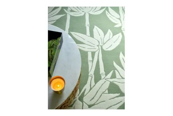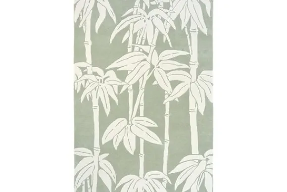 Vloerkleed Japanese Bamboo Jade 039507 van het merk Florence Broadhurst is gemaakt van wol en viscose. Dit vloerkleed is groen met een witte print.