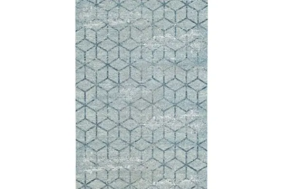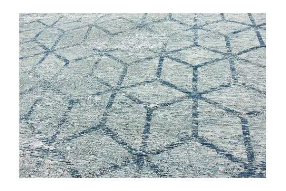 Outlet Vloerkleed Washed Blue Geo Vloerkleden