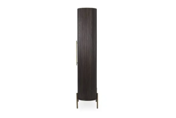 Wandkast Luxor 211115 van het merk Richmond Interiors is een unieke wandkast met een jaren 60 stijl dat in een nieuw jasje is gestoken. De wandkast heeft een luxueuze uitstraling door zijn strakke vorm gecombineerd met het ribbenmotief. De wandkast is voorzien van één deur met daarachter opbergruimte. Deze opbergruimte wordt gesplitst door vier liggende planken. De afmeting van deze vier opbergruimtes is H40xB87,5×40 cm (per plank). De handvatten en poten zijn gemaakt van brass (staal in mat goud).