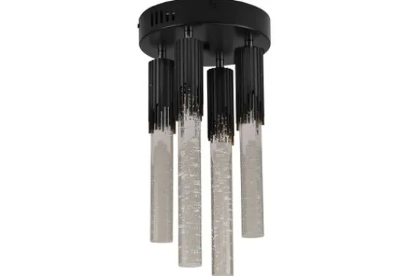 Plafondlamp Maud van het merk Toms Luxury Lights is een luxe lamp met 4 G4 fittingen. De lamp is standaard uitgevoerd in Zwart. Het kristal glas heeft kleine bubbels erin, wat voor een speels effect zorgt.