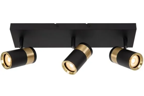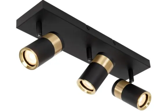Plafondlamp Gorik van het merk Lucide combineert functioneel licht met een luxueuze uitstraling. De matzwarte metalen behuizing wordt verfijnd aangevuld met gouden accenten, wat zorgt voor een stijlvol contrast en een warme, moderne look.